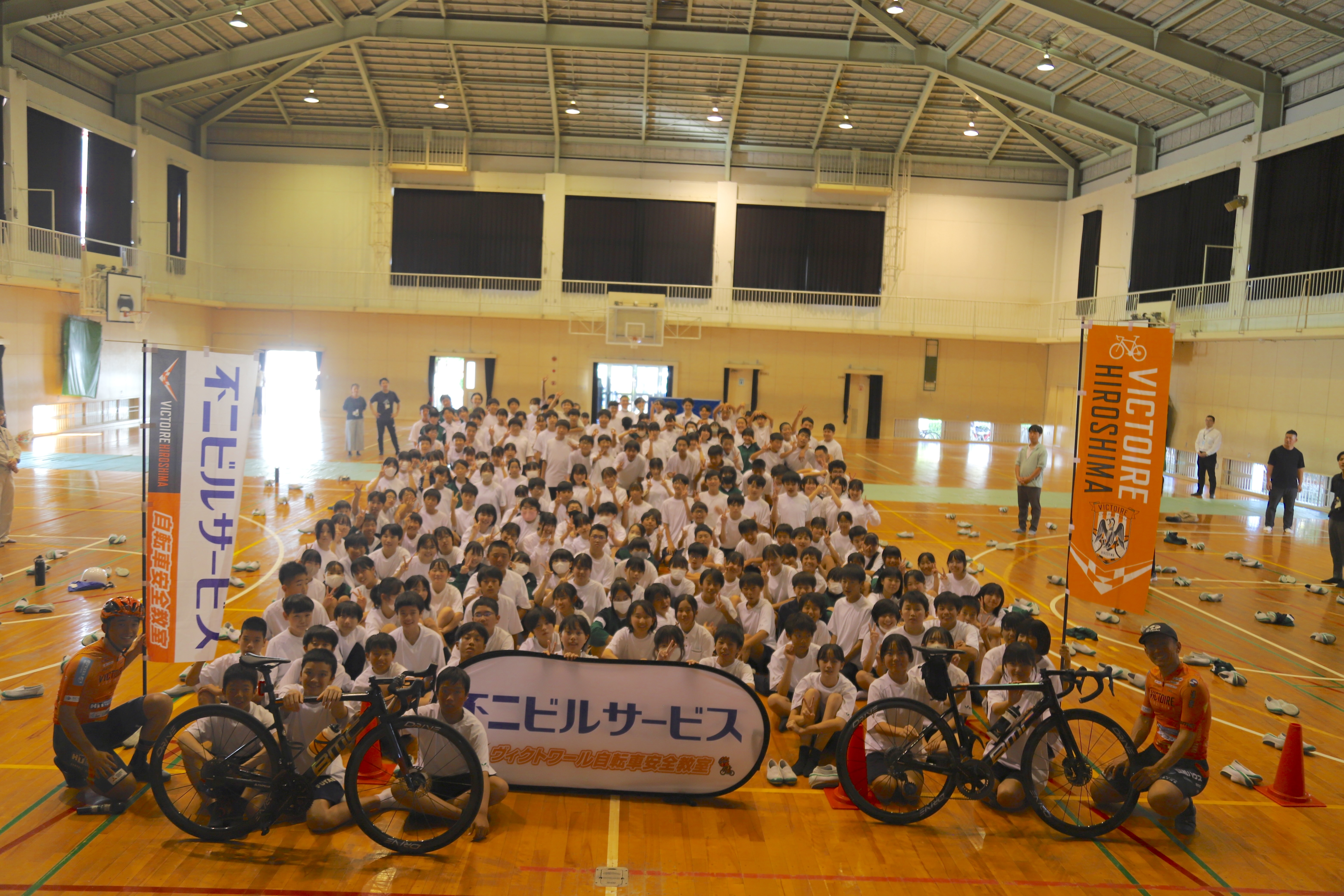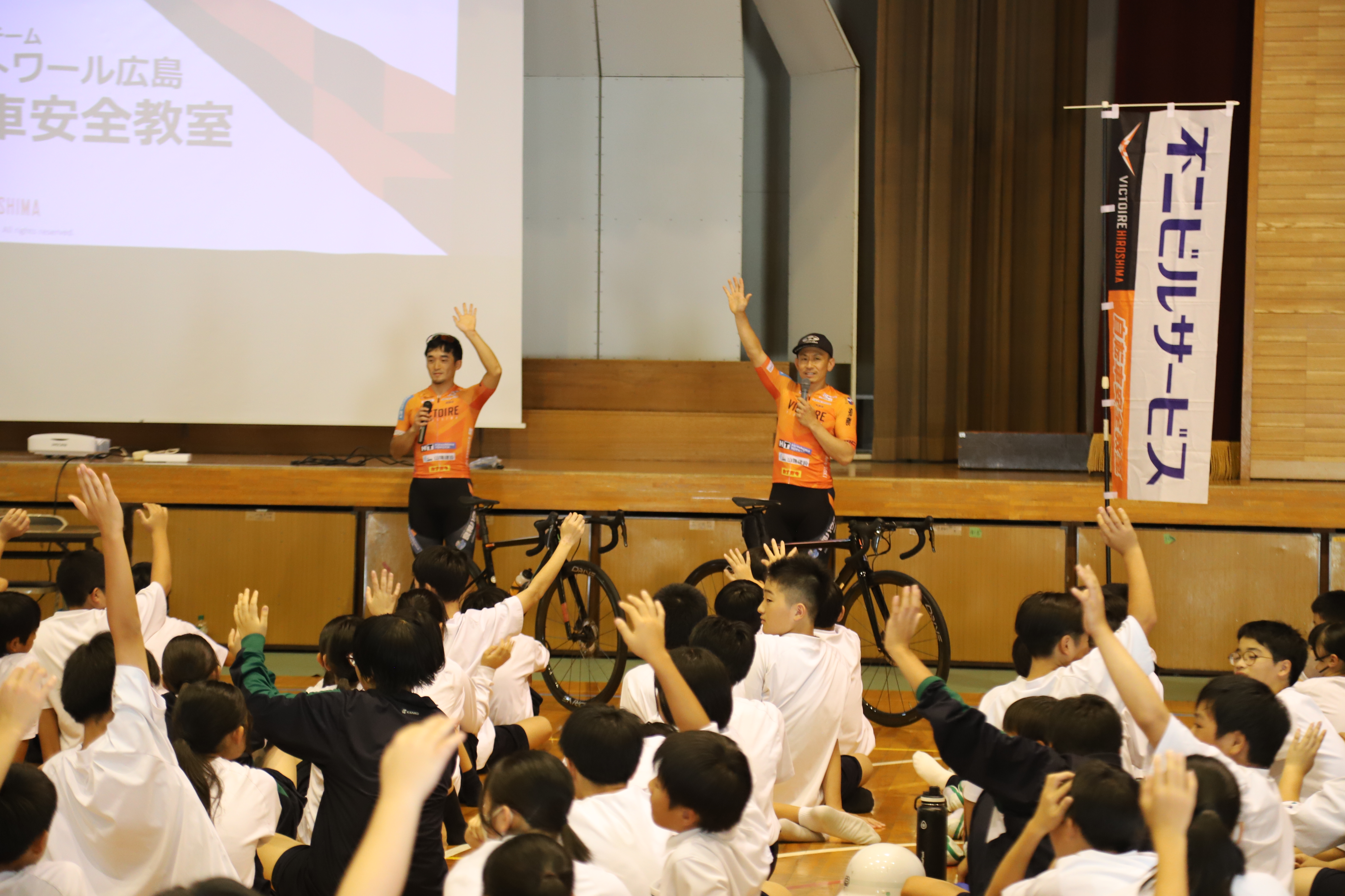 本日10/6(月)広島市立二葉中学校にて1年生約200名を対象に自転車安全教室を実施し、講師は柴田選手と吉本選手が務めました!