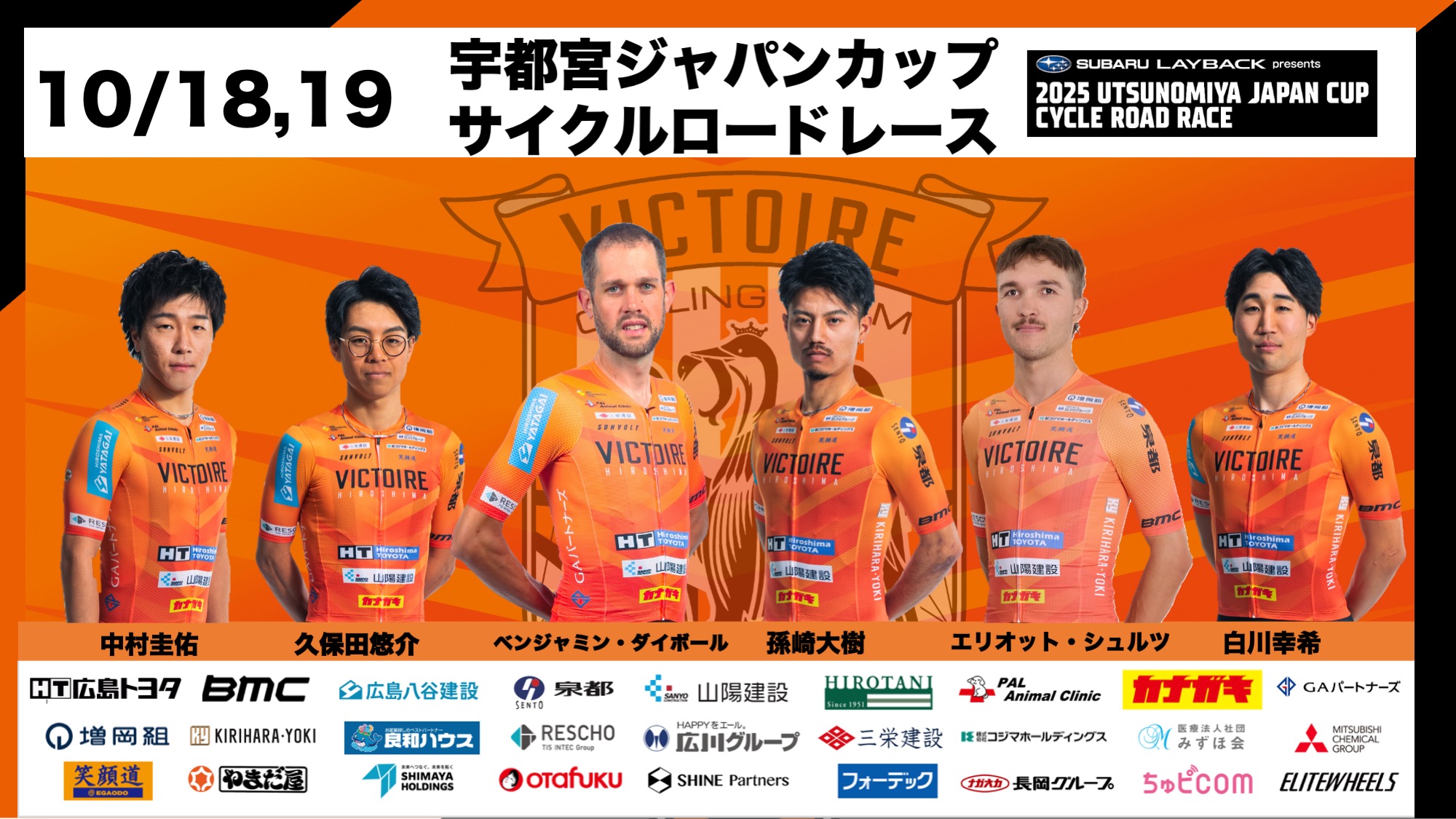 - 10/18(土) 19(日)に栃木県宇都宮市で開催される宇都宮ジャパンカップサイクルロードレースに孫崎、ベンジャミン、エリオット、久保田、白川、中村の6名が出場します。