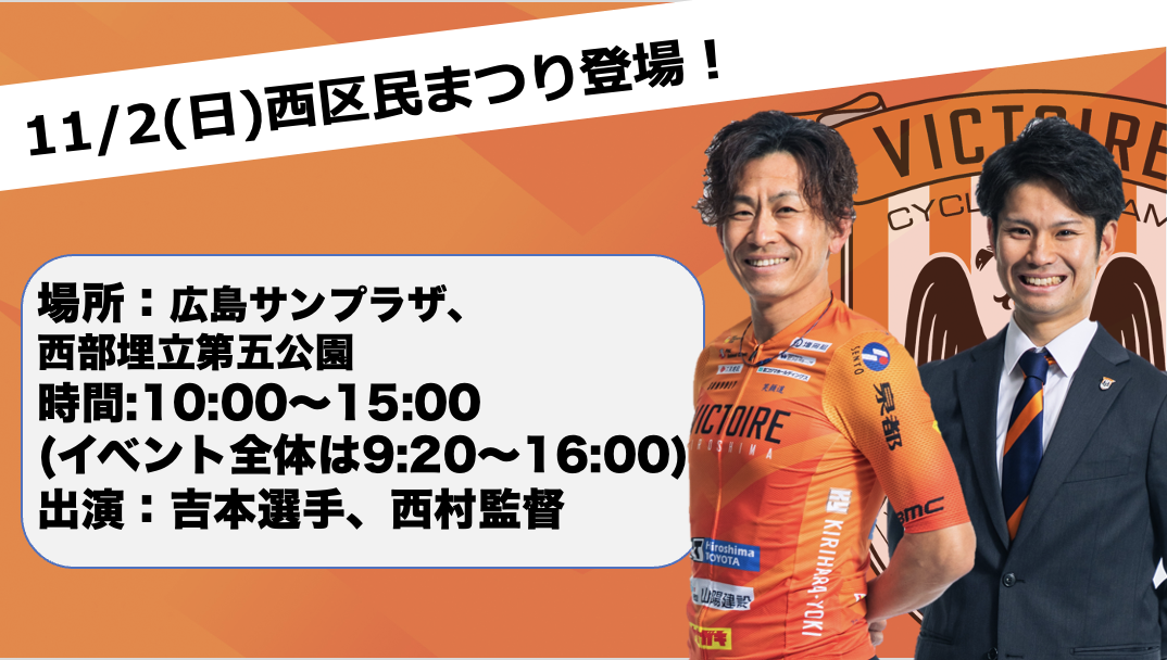 11/2(日)開催の「第41回西区民まつり」に吉本選手と西村監督が出演!