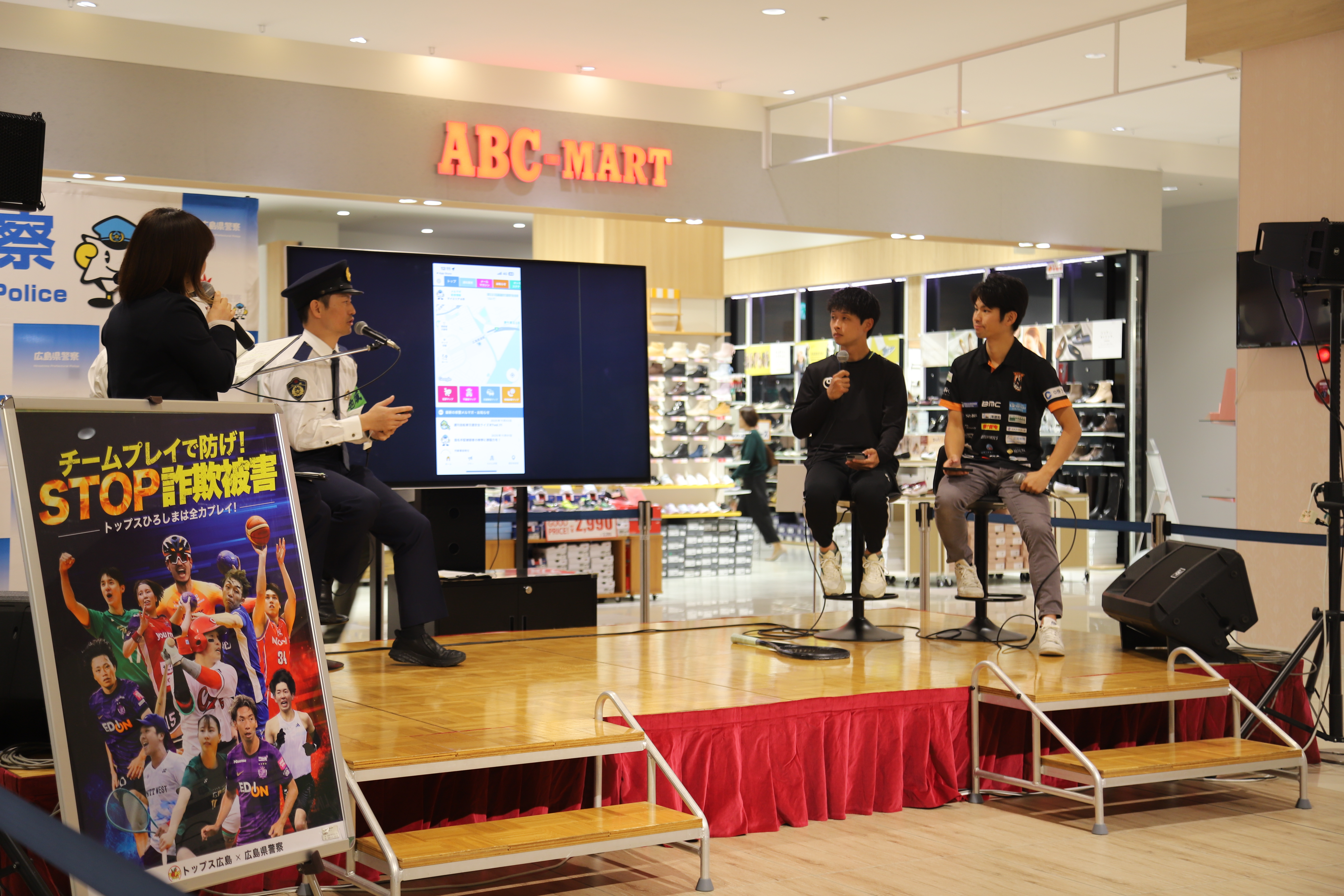 本日11/3(月)、LECTで開催された広島県警察の防犯イベント「オトモポリスで詐欺や自転車盗の被害を防ごう!」のトークショーに西村監督が出演しました♪