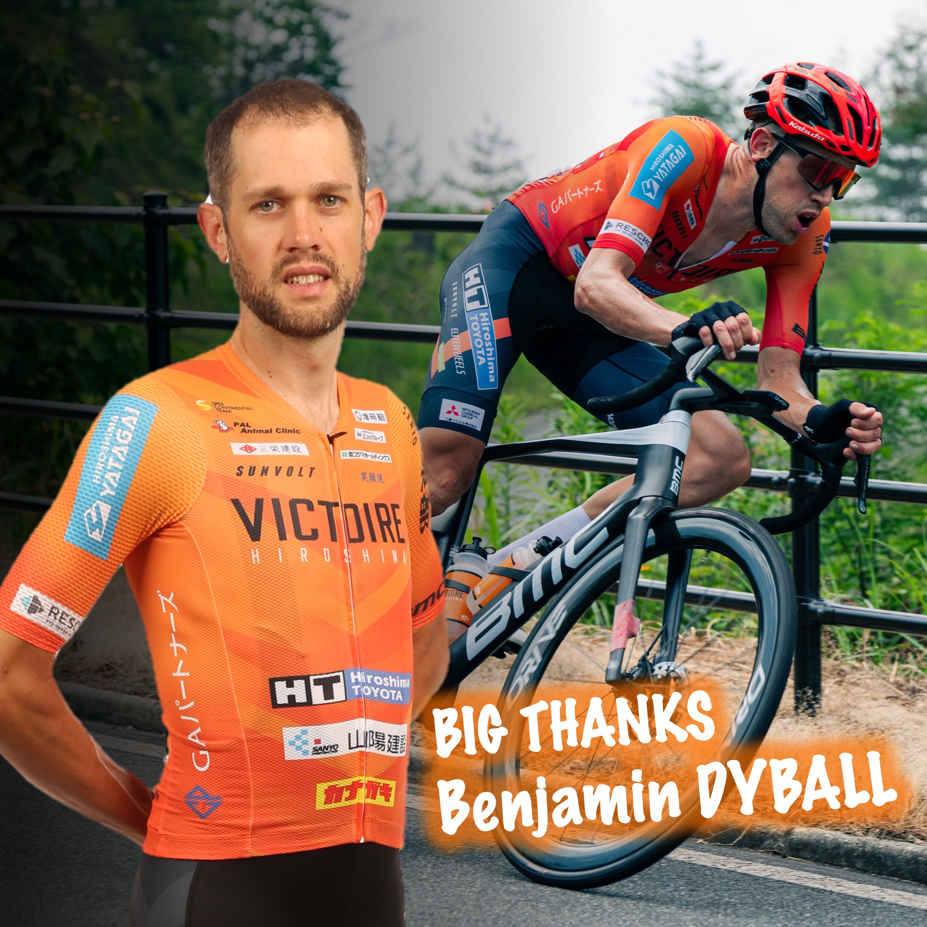 ベンジャミン選手は2023年から3シーズンにわたりチームに所属し、通算3勝を挙げました。また、ツアー・オブ・ジャパンやJBCF広島大会など数々の大会で表彰台に立ち、チームに多くの感動と興奮をもたらしてくれました。