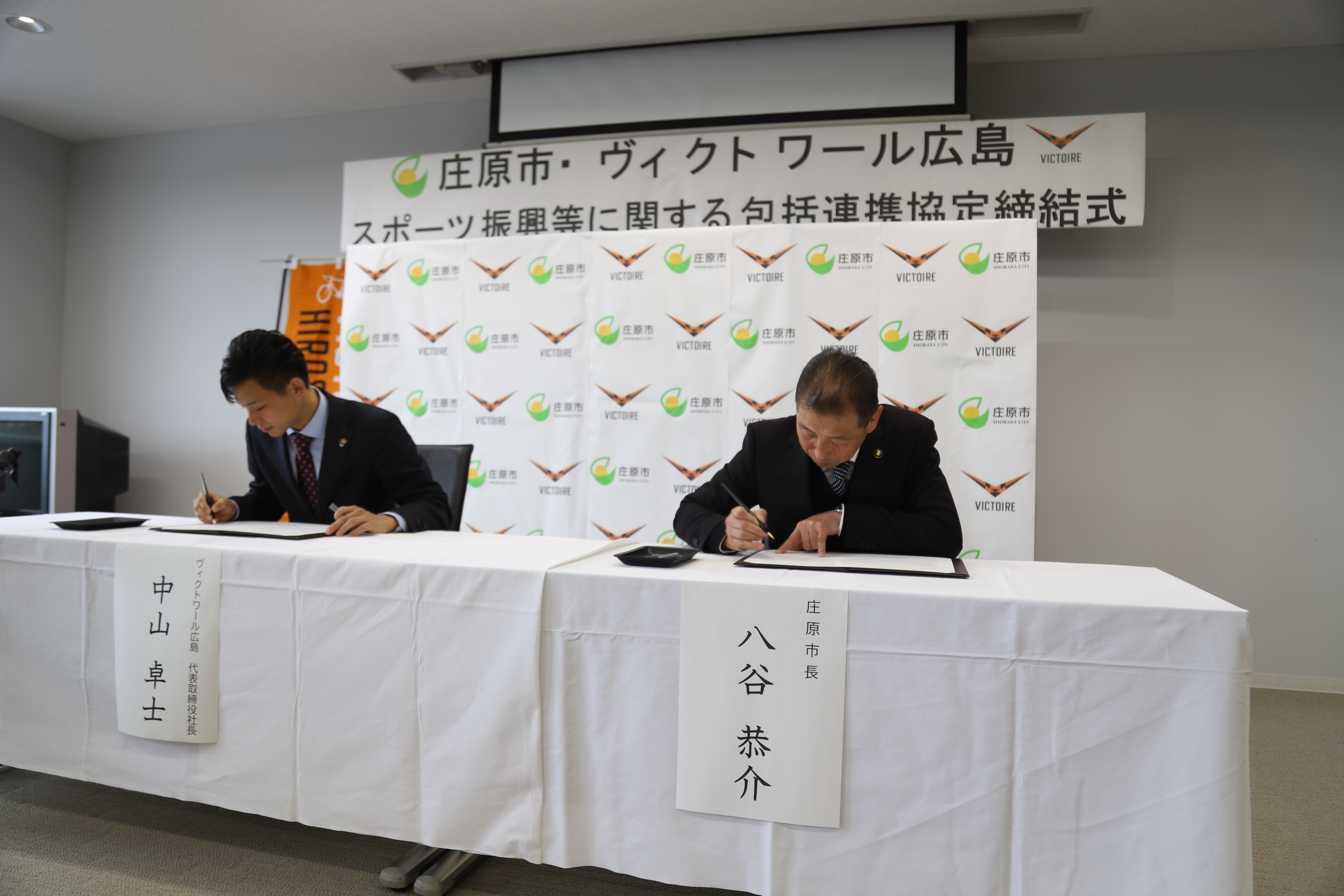 ヴィクトワール広島はこのたび、庄原市と「スポーツ振興等に関する包括連携協定」を締結しました。