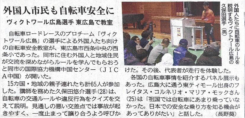 先日の東広島JICA安全教室について、本日12月12日の中国新聞の呉・東広島版に掲載されました。
