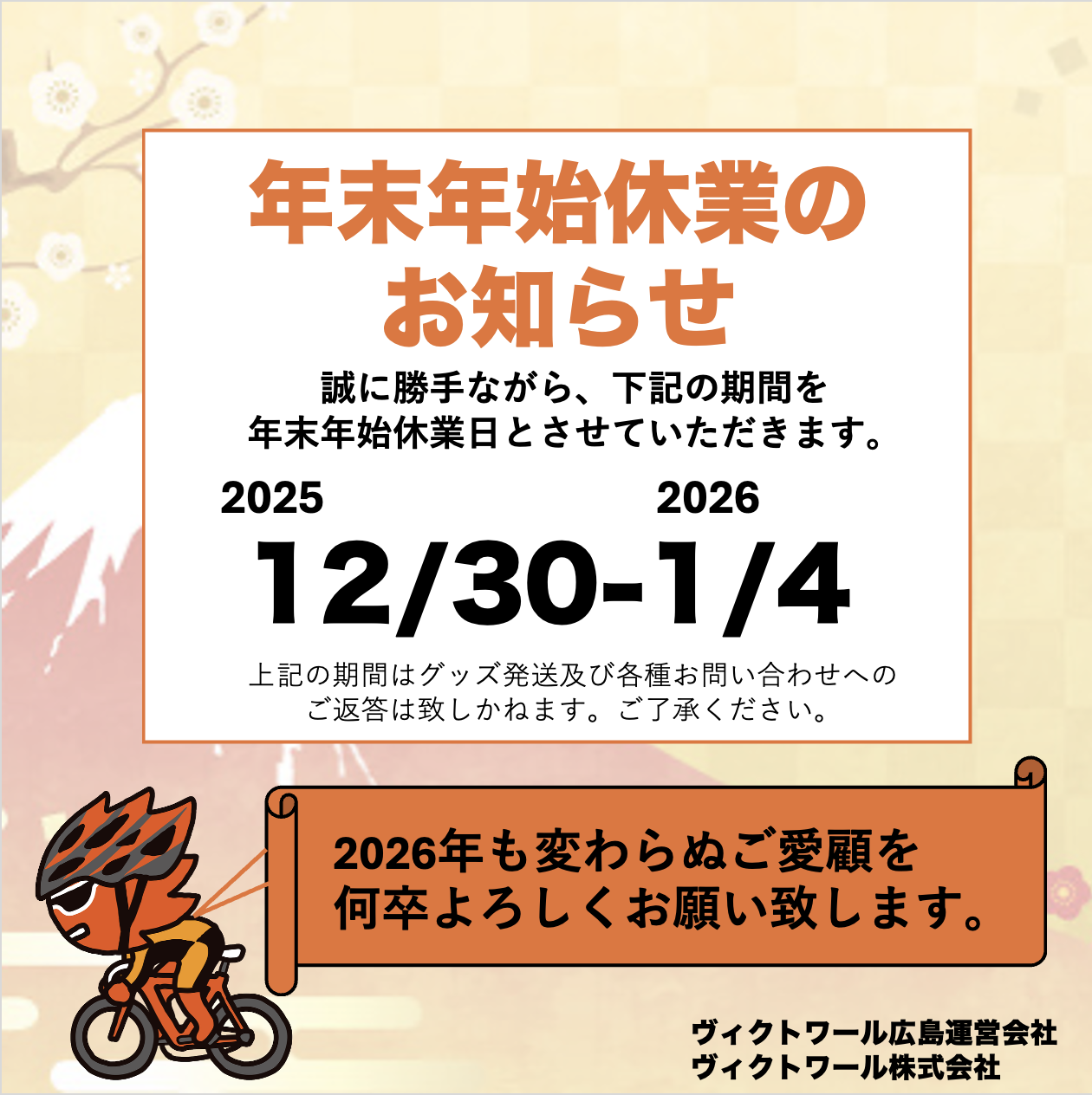 誠に勝手ながら、ヴィクトワール広島は下記の期間を年末年始休業とさせて頂きます。