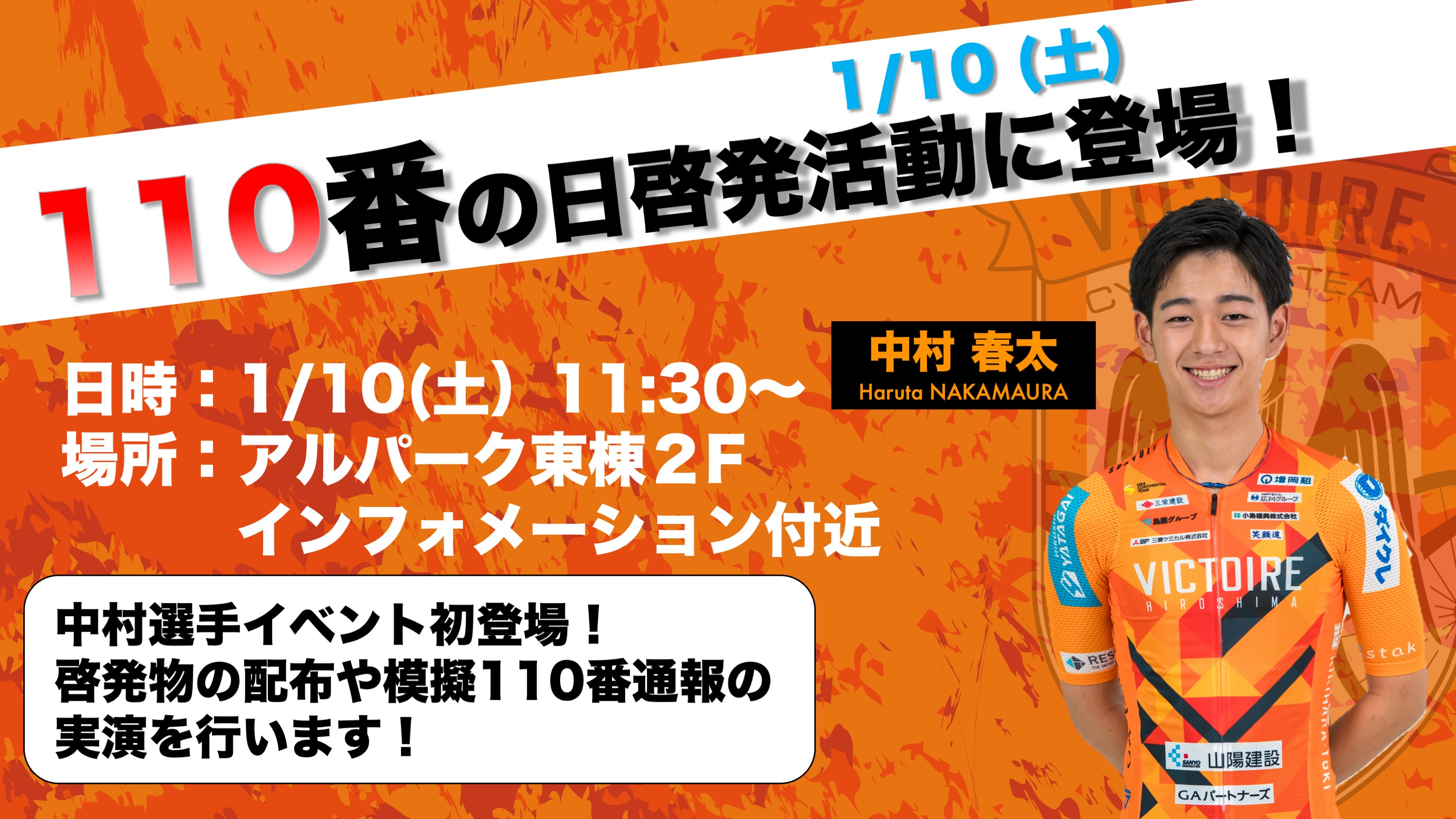1月10日(土)にアルパークで開催される「110番の日啓発活動」に中村春太選手が登場します!