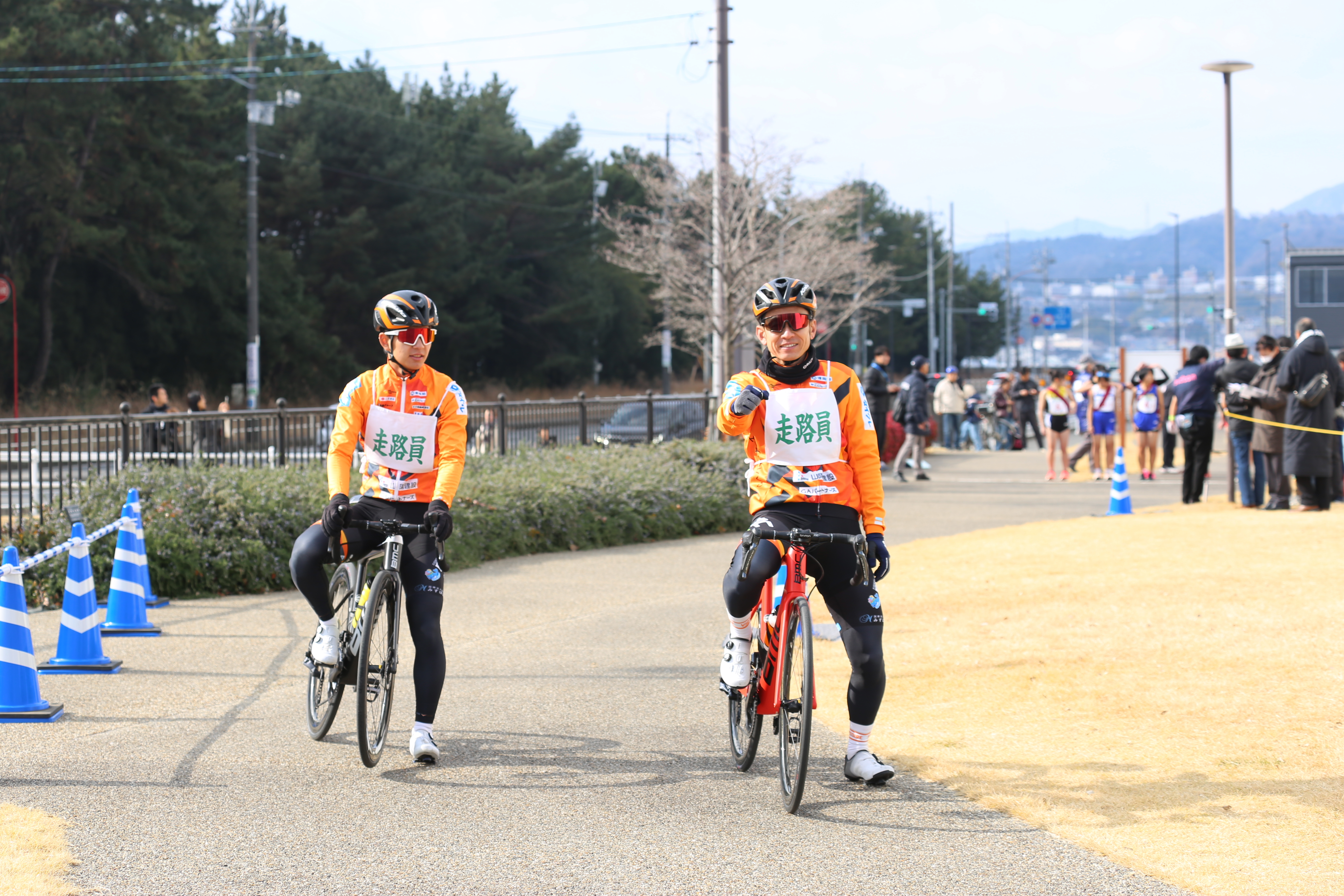 駅伝の先導は2人とも初めてでしたが、安全走行を第一に、無事役目を果たすことができました✨