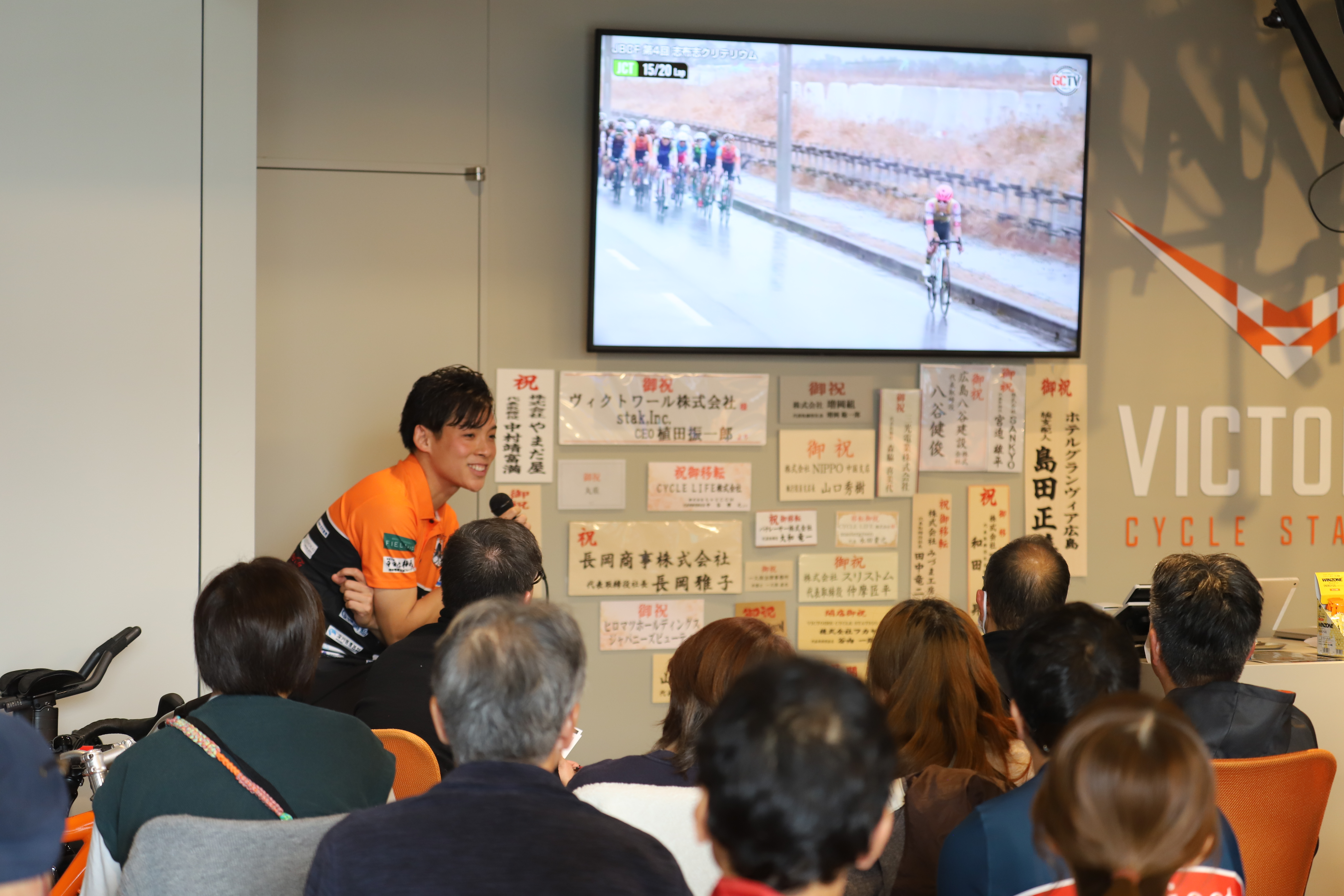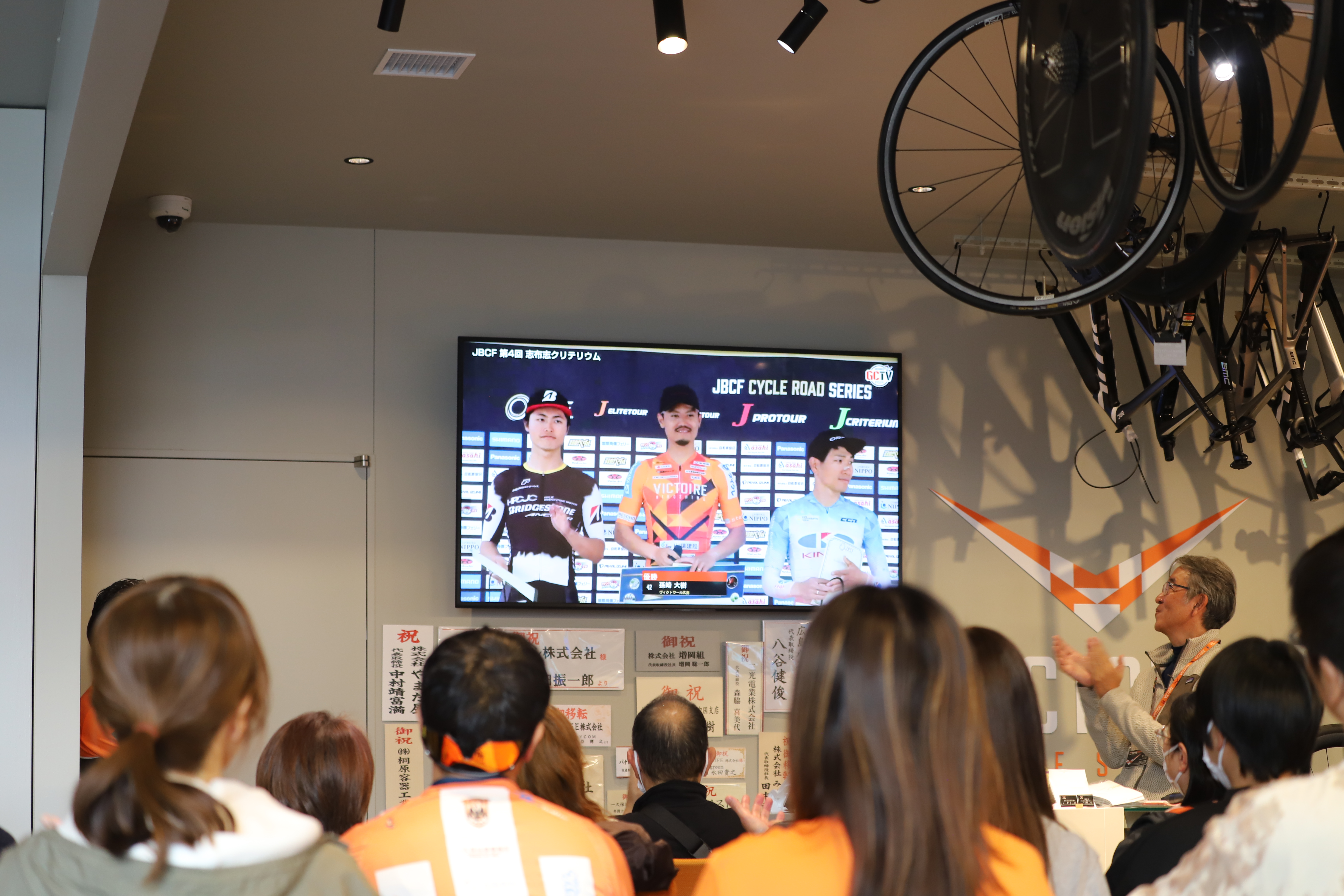 VICTOIRE CYCLE STATIONにて、本日の「志布志クリテリウム」のパブリックビューイングを行いました。