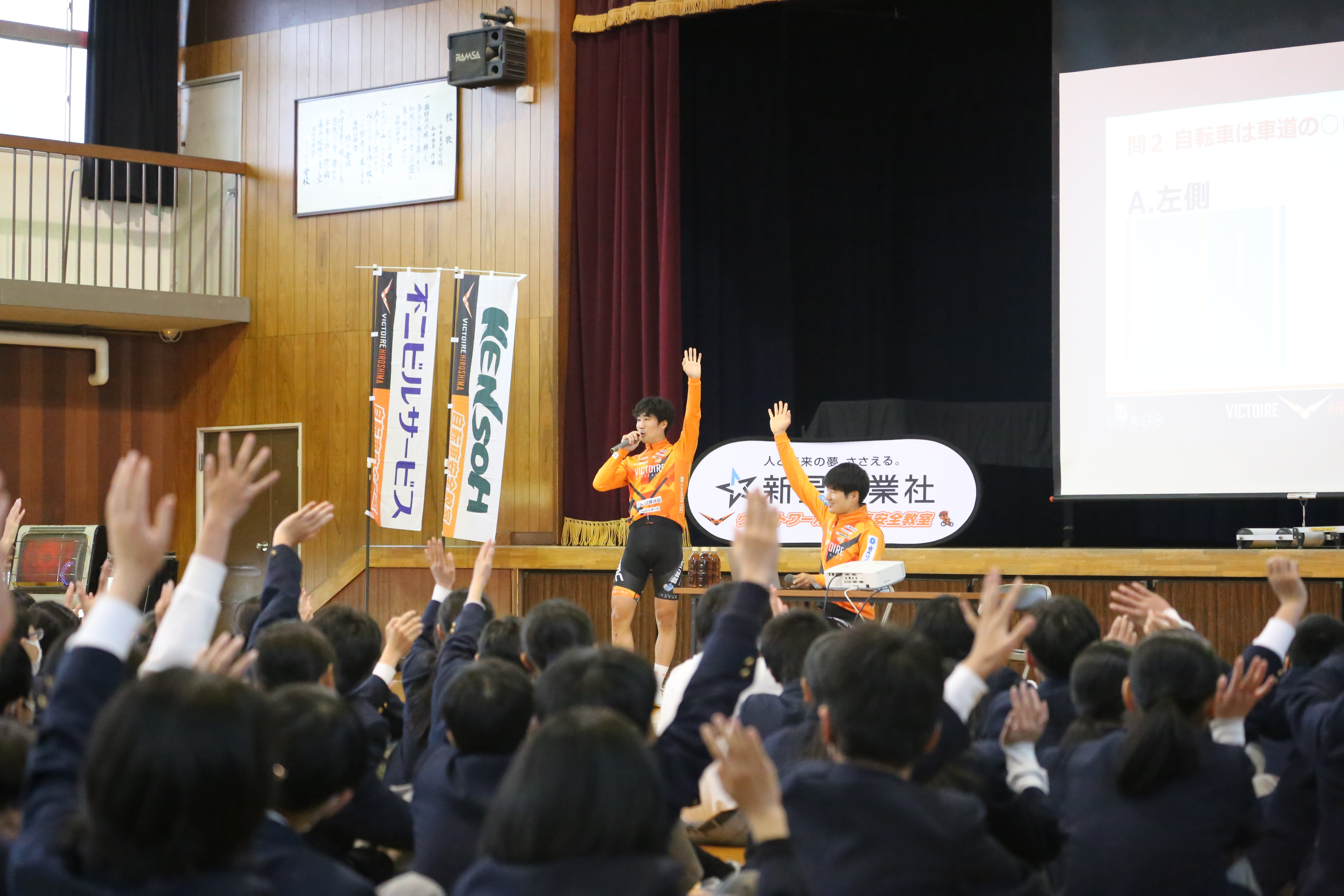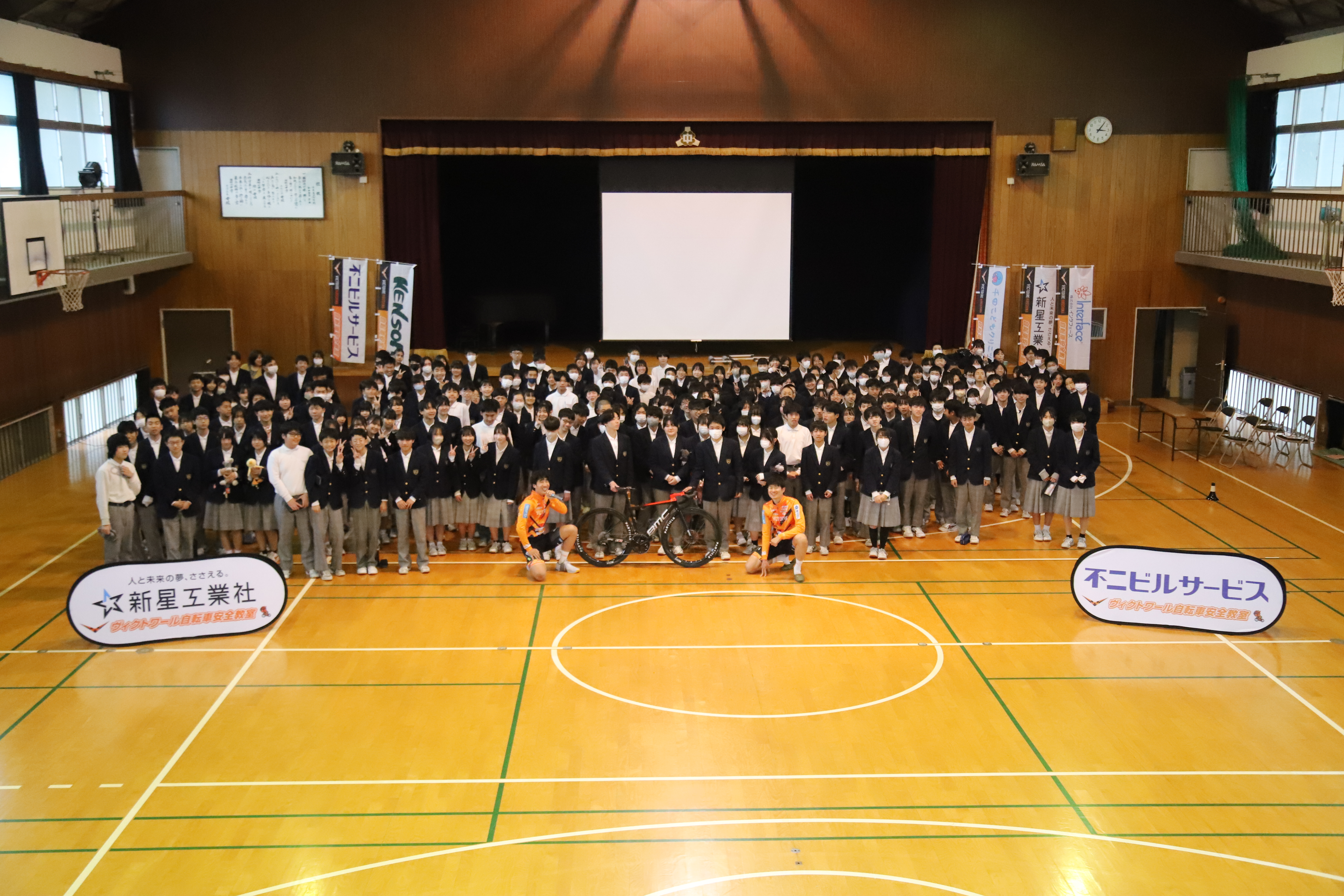本日、自転車安全教室を瀬野川中学校で開催し、白川選手・福岡選手が講師を務めました。広島市安芸区でヴィクトワール広島が安全教室を開催するのは初となります。