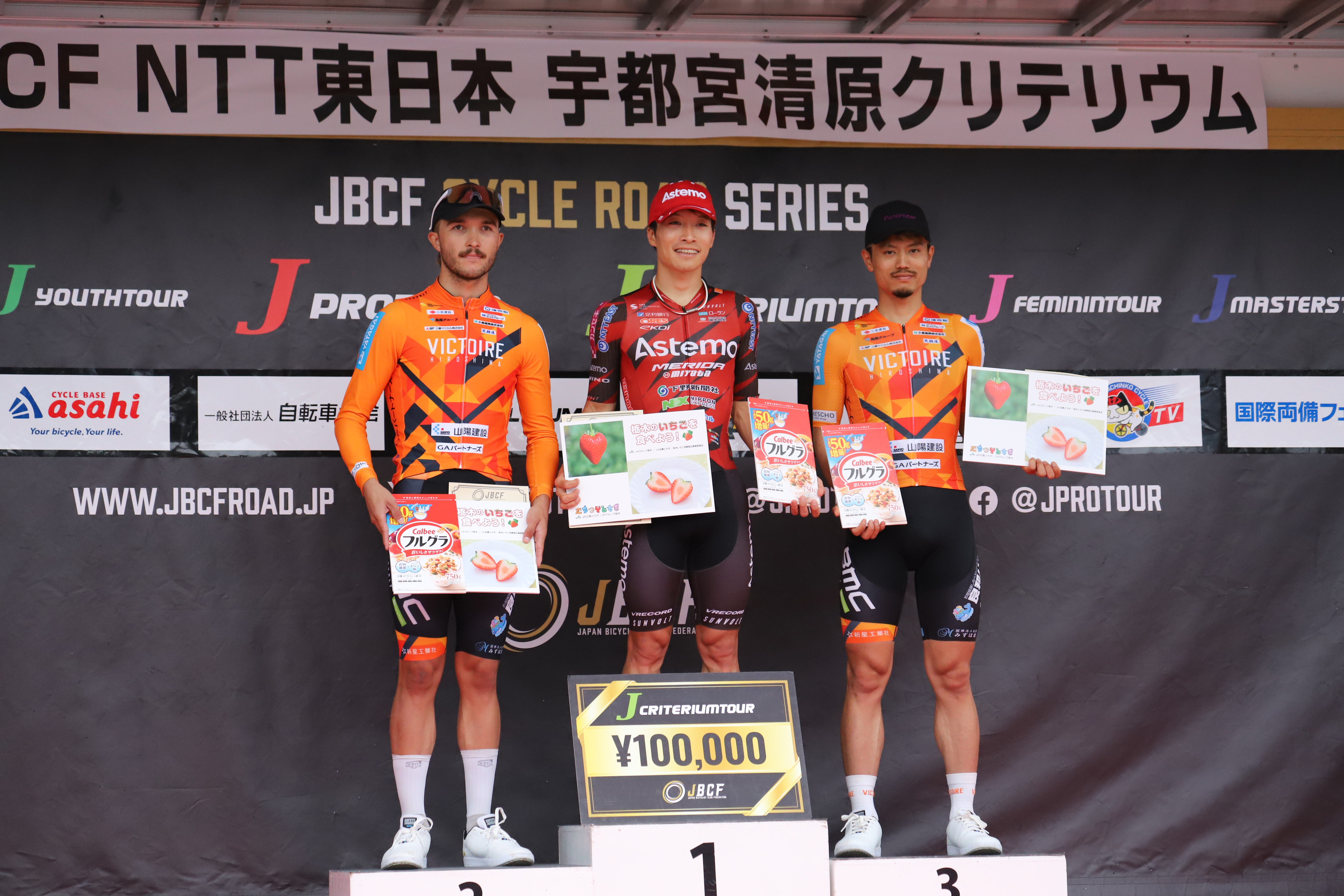 迎えた最終局面は集団スプリント勝負。各チームのトレインが交錯する中、鋭い加速を見せた岡篤志(Astemo宇都宮ブリッツェン)が優勝。ヴィクトワール勢もエリオットが僅差の2位、孫崎が3位と表彰台に2名を送り込む結果となりました。